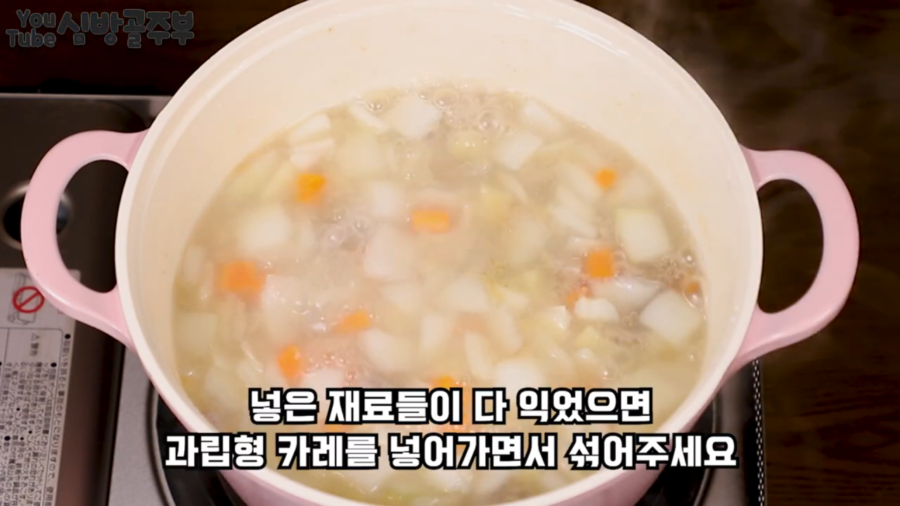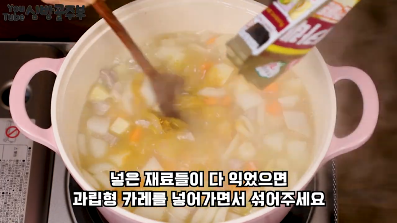 중간중간 나오는 거품을 걷어주면서 끓이면 좀 더 깔끔한 카레를 만들 수 있답니다