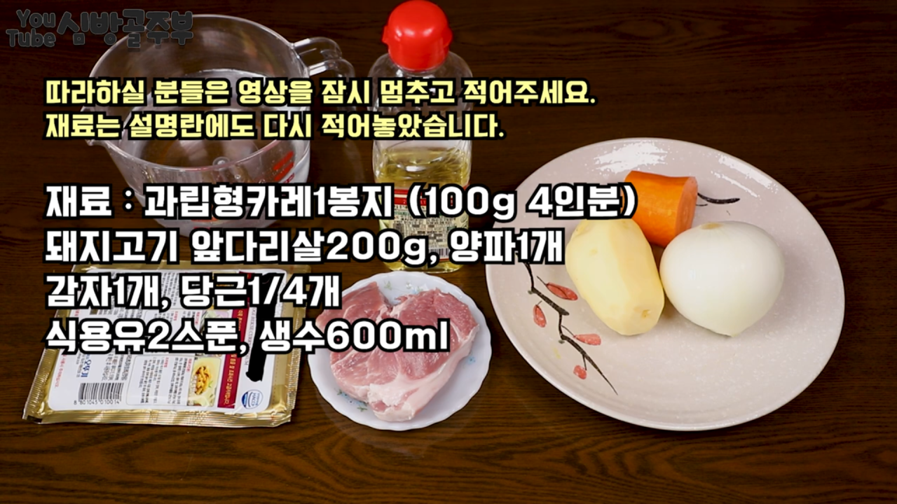 지난번 짜장영상에 이어서, 이번에는 간단하게 할 수 있는 카레를 만들어보았습니다