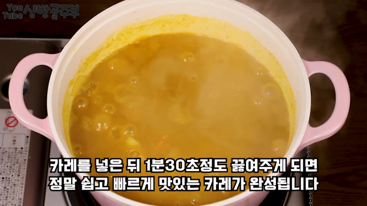 카레를 넣은 뒤 1분30초정도 끓여주게 되면 정말 쉽고 빠르게 맛있는 카레가 완성됩니다